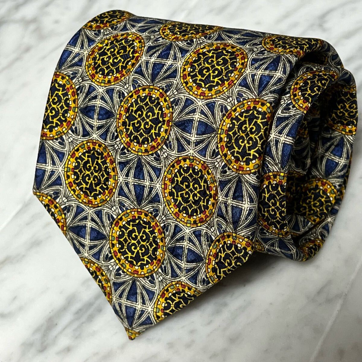 - 【美品】 999円~ Christian Dior ネクタイ ネイビー マルチカラー 幾何学模様 (B10)