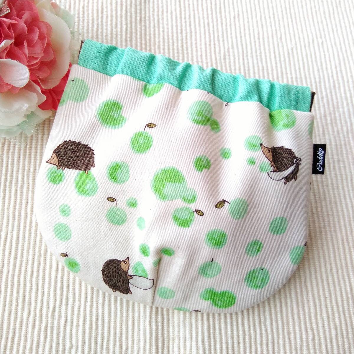 - ハンドメイド バネポーチ はりねずみ グリーン