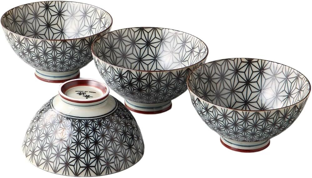 - 美濃焼! ☆麻の葉ご飯茶碗4客揃☆ V4075-5 新品 飯碗 ご飯茶碗 丼 どんぶり 碗 盛鉢 盛皿 鉢 プレート ギフト