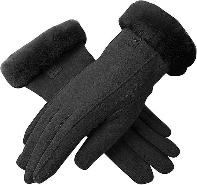 - 手袋 レディース 防寒 防風 暖かい スマホ タブレット 手ぶくろ 裏起毛 ファー ボア 手首 スマホ手袋 5本指 秋冬(フリーサイズ)
