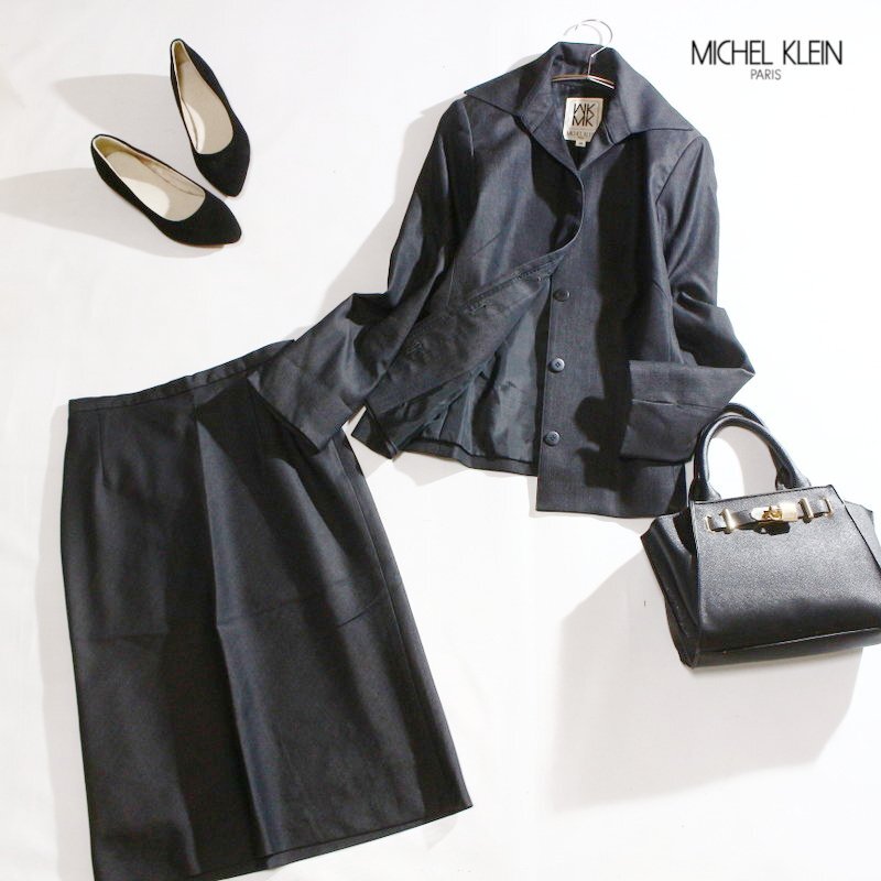 > ミッシェルクラン MICHEL KLEIN 定番 上質 サマーウール 上下 スーツ セット スカート 9号 通勤 通年 ビジネス レディース フォーマル