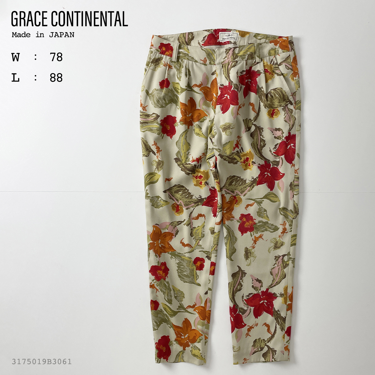 > GRACE CONTINENTAL サテン 花柄 テーパード アンクル丈 クロップド パンツ 総柄 ベージュ 柄 グレースコンチネンタル 38 レディース L 11号