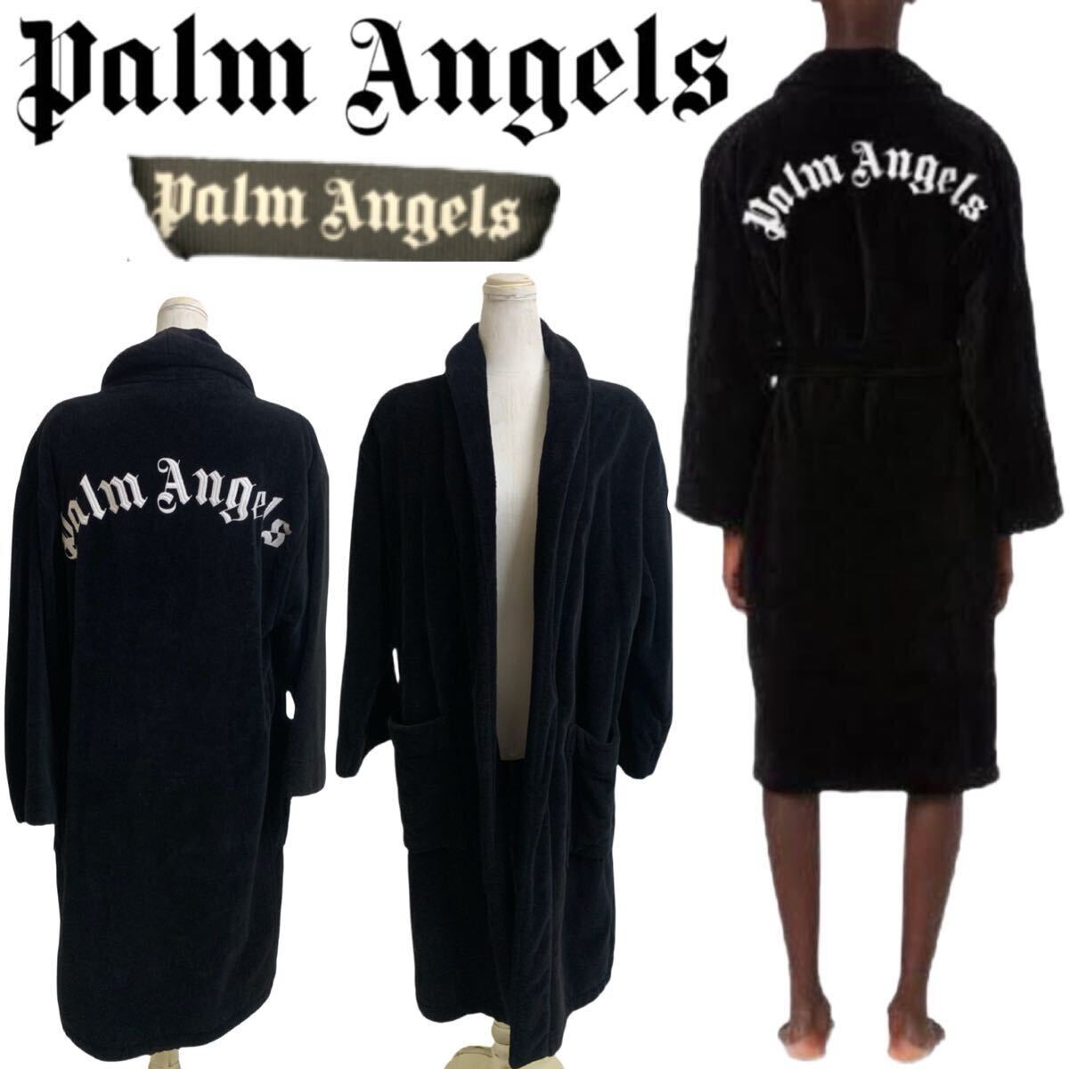 > Palm Angels パームエンジェルス MADE IN ITALY イタリア製 バックロゴ刺繍 パイル地 ガウンコート ラップコート ブラック S アーカイブ