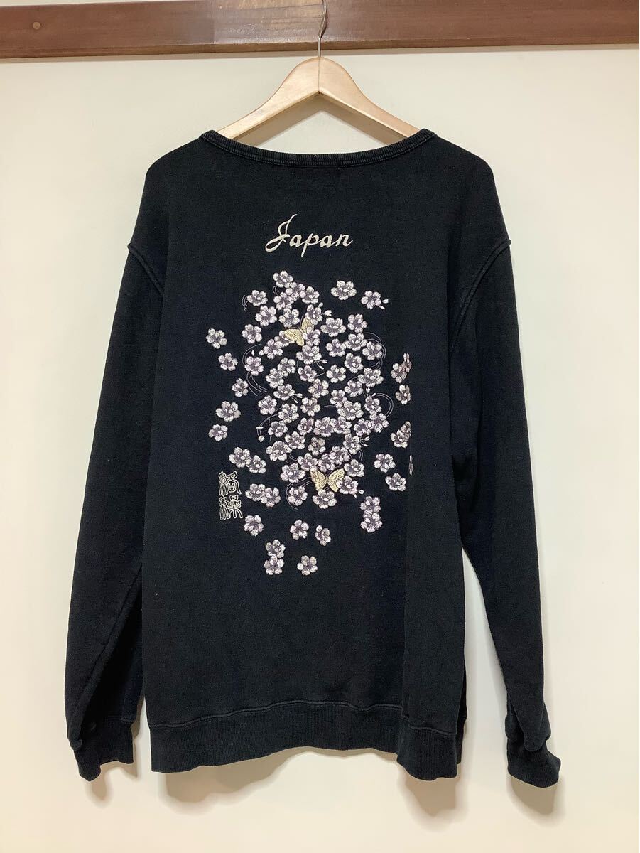 - へ1584 絡繰魂 和柄刺繍 スウェット トレーナー XL ブラック 桜 裏パイル