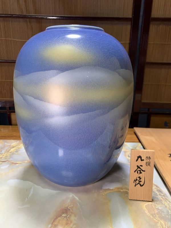 - 九谷焼 石盛造 花瓶 置物 アンティーク 水色花瓶 #my2f