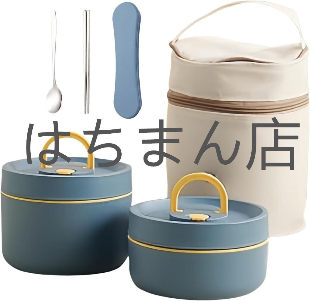 - ステンレス保温弁当箱5時間の保温、真空断熱スープジャー 大容量、スープランチセット、ステンレスランチジャー(ブルーです,三階です)