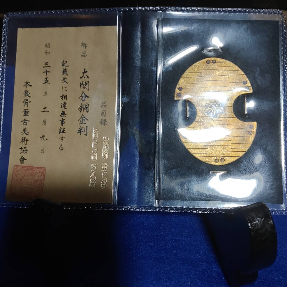 - (鳥羽庵)初荷品骨董 太閤分銅小判 時代 鑑定証付