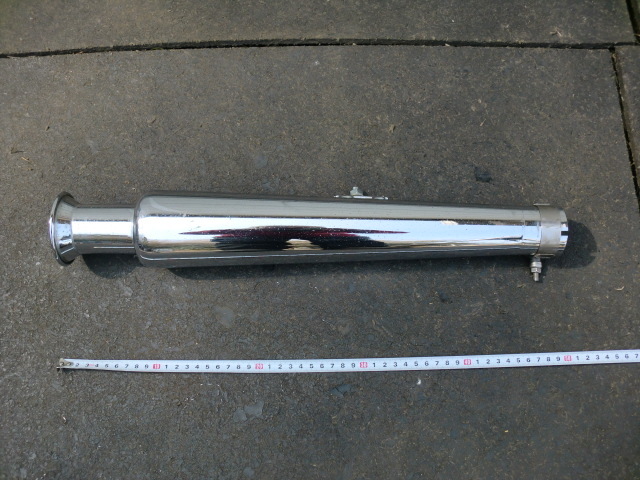 - トランペットマフラー メガホンマフラー クローム Tボルトバンドクランプ付き サイレンサー付き 全長約490mm M08
