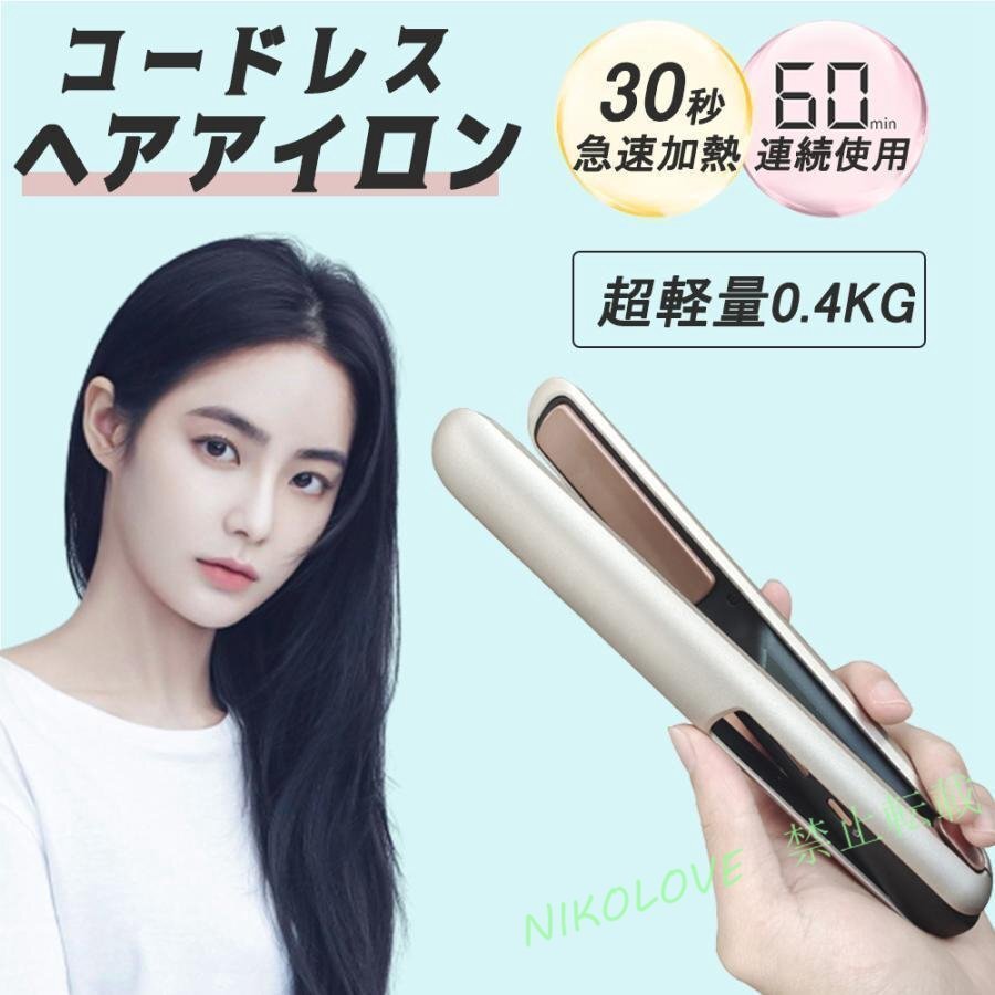 > ヘアアイロン 60min連続使用 温度調節 2way ヘアスタイリングアイロン 内巻き 外巻 時短 ツヤ レア髪 USB充電式 美髪 MK355