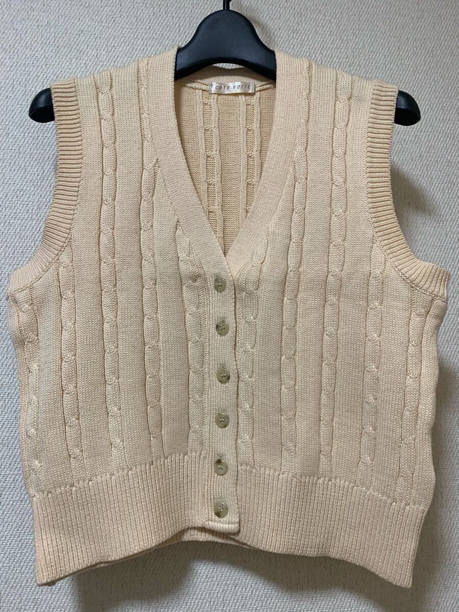 > COTE-ROTIE ベスト ニット M オレンジ系 レディース 女性 婦人用 綿95% 絹5% トップス Vネック 綿 ケーブル編み 縄編み シンプル 無地