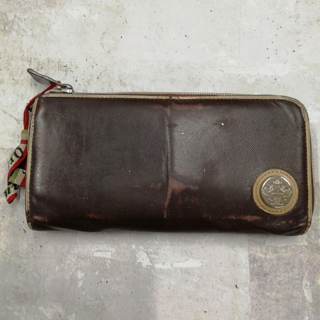 - オロビアンコ 長財布 ラウンドファスナー 本革 レザー カード収納 茶【b97】