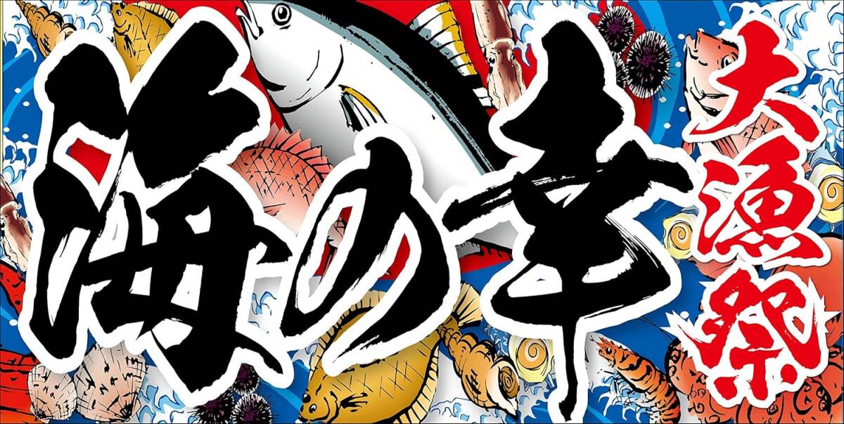 - タペストリー 横断幕大 海の幸 大漁祭 大漁旗 まぐろ マグロ 大漁祭り 新鮮魚介 商売繁盛 千客万来 北海道 お持ち帰り 寿司 刺身 日本海