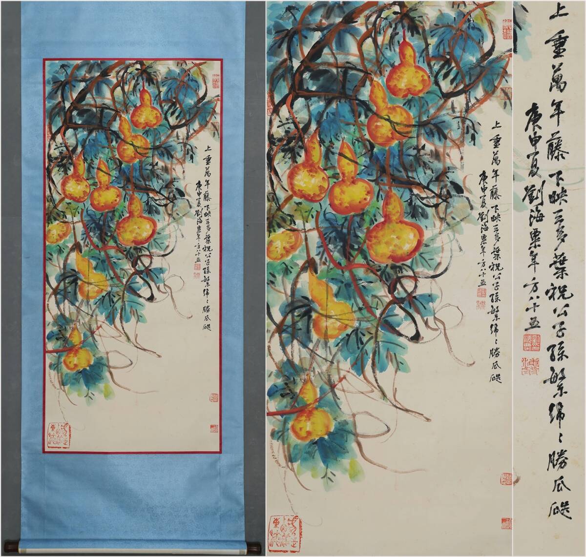 - 古美術 掛け軸 中国・近現代 「劉海粟書」 紙本 【万年福禄図】 立軸 書道 巻き物 肉筆保証 唐物 古画 画心136x62cm LT-2503115