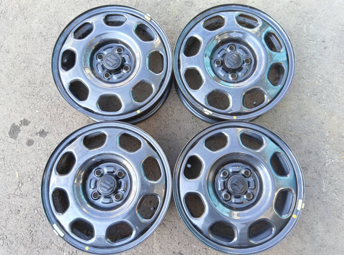 > No.1800【スズキ純正 15インチスチールホイール】15×4.5 PCD100 4穴 OFF不明