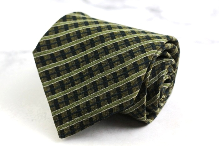 - ジョルジオアルマーニ ブランド ネクタイ シルク ストライプ柄 チェック柄 伊製生地 PO メンズ カーキ GIORGIO ARMANI