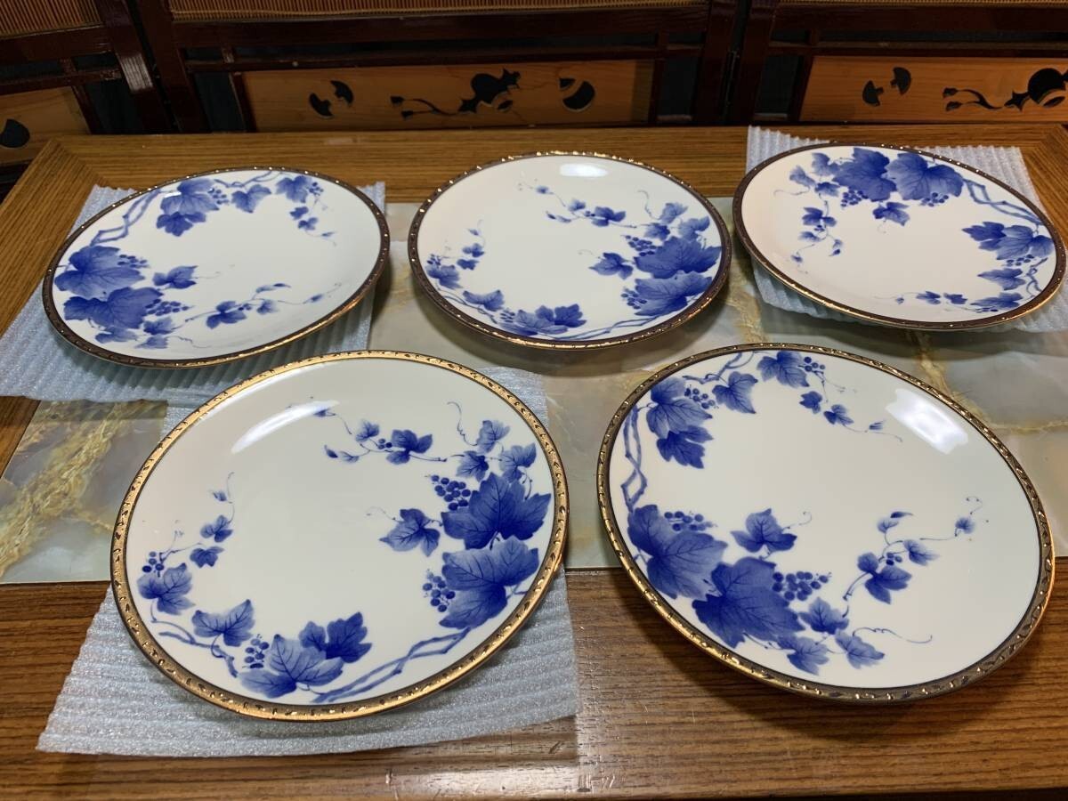 - 金彩ブドウ ぶどう柄 プレート お皿 5ケ #203my