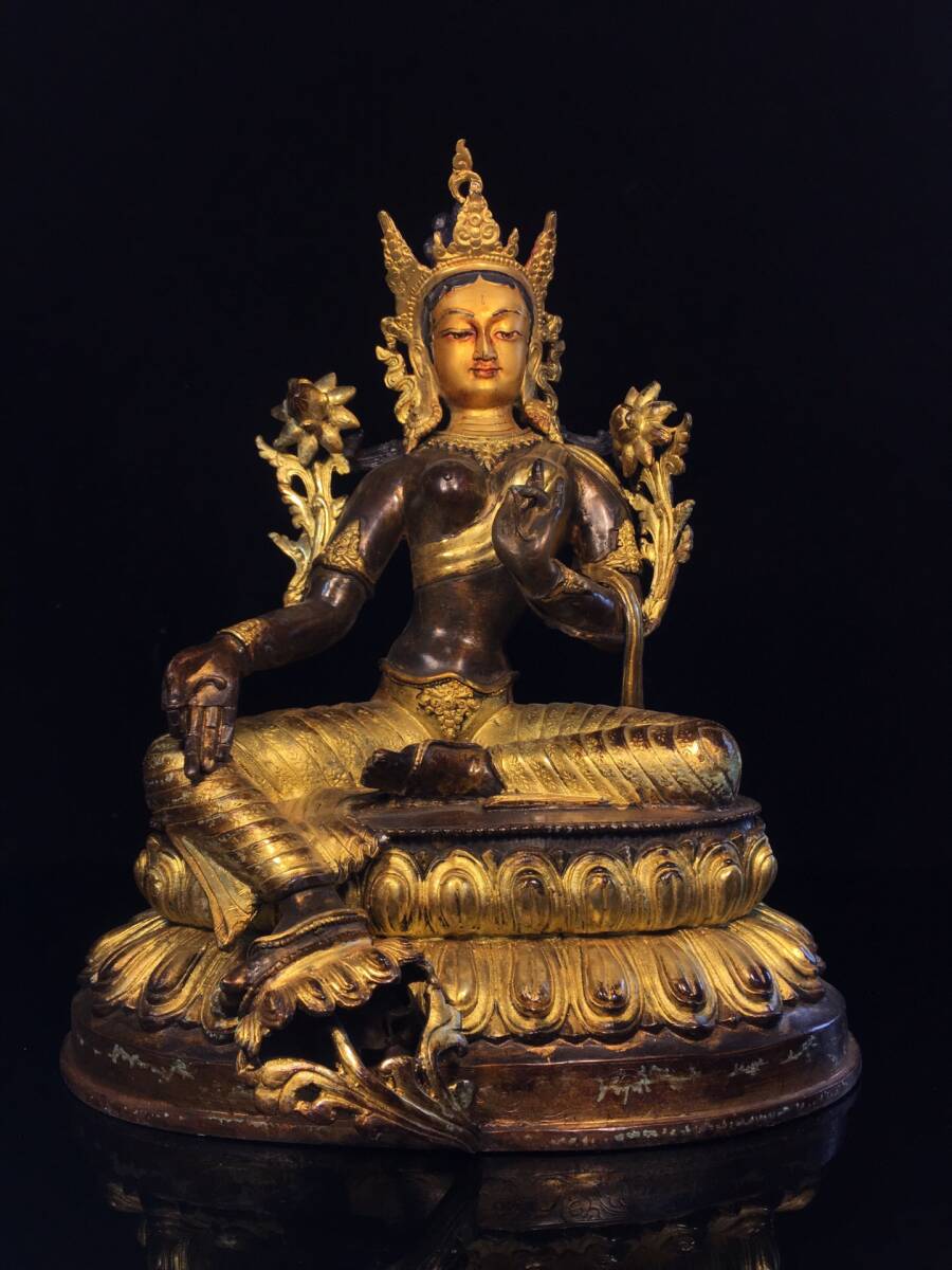 - ▽鴻▽ 銅製 塗金 綠度母像 置物 古賞物 中国古玩 中国古美術