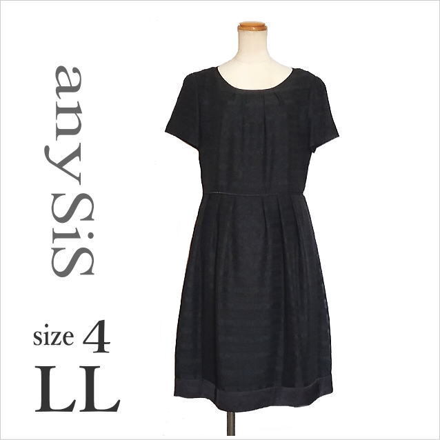 > [anySiS]黒シアーボーダー柄ワンピース エニィスィス オンワード樫山 半袖 フレア レディース 上品 4 LL位 ☆送料込み