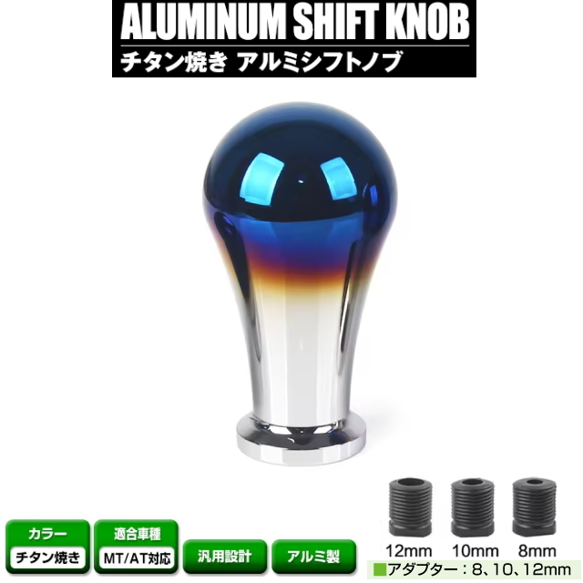 > アルミシフトノブ チタン風 B型 M8/M10/M12アダプター アルミ製 アルミ削り出し オートマ車 AT マニュアル車 MT どちらもOK 球体シフトノブ