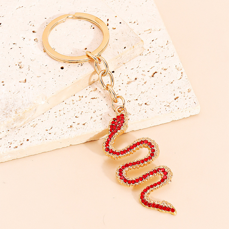 - ヘビ キーホルダー 蛇 へび ヘビ歳 へび年 キーリング キーチェーン 金運 風水 開運 縁起物 開運 へびモチーフ ラインストーン 赤