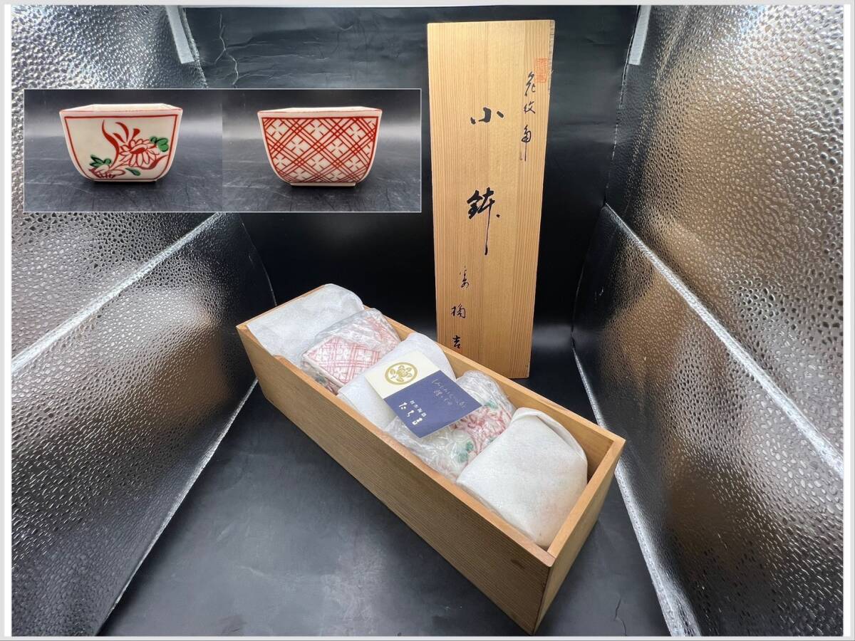 - B)未使用 和食器 たち吉 橘吉 赤絵花鳥柄 角小鉢 小鉢 深鉢 5個セット C08i