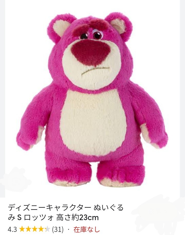 - 匿名配送込 レア 未使用タグ付き ピンクのロッツォ ディズニーキャラクター ぬいぐるみS ロッツォ