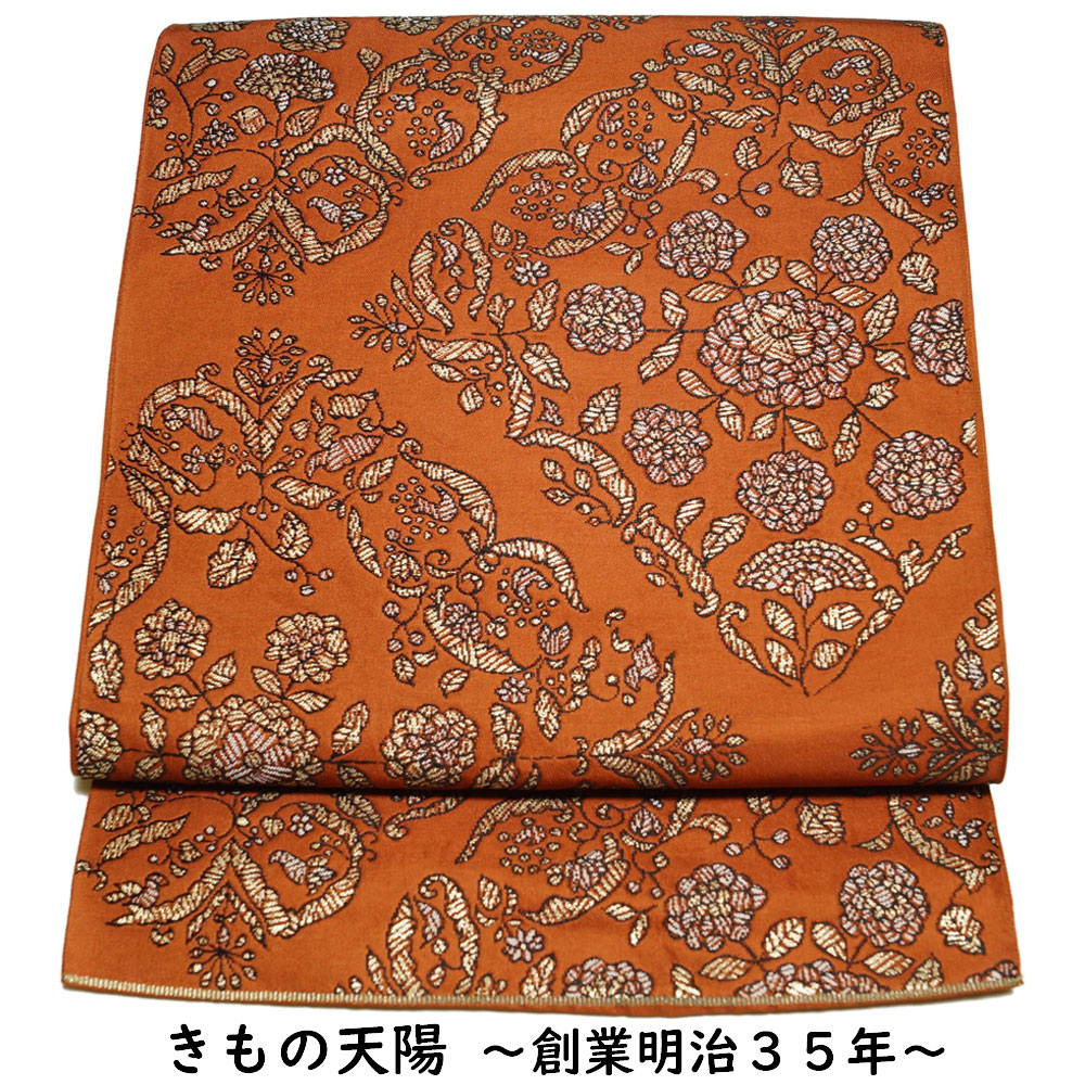 > 袋帯 菱取唐花模様 赤茶色系 金糸 本袋帯 六通柄 本袋 リサイクル 帯 正絹 中古 リサイクル着物 帯 フォーマル 袋帯 着物 きもの天陽