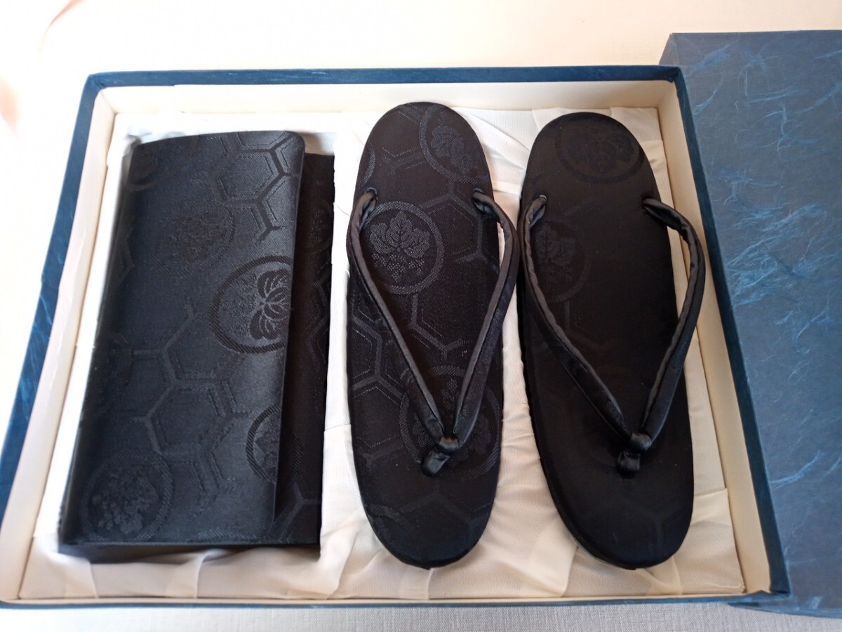 - 11855 ★★ 和装小物 草履・バッグ セット 柄入 黒