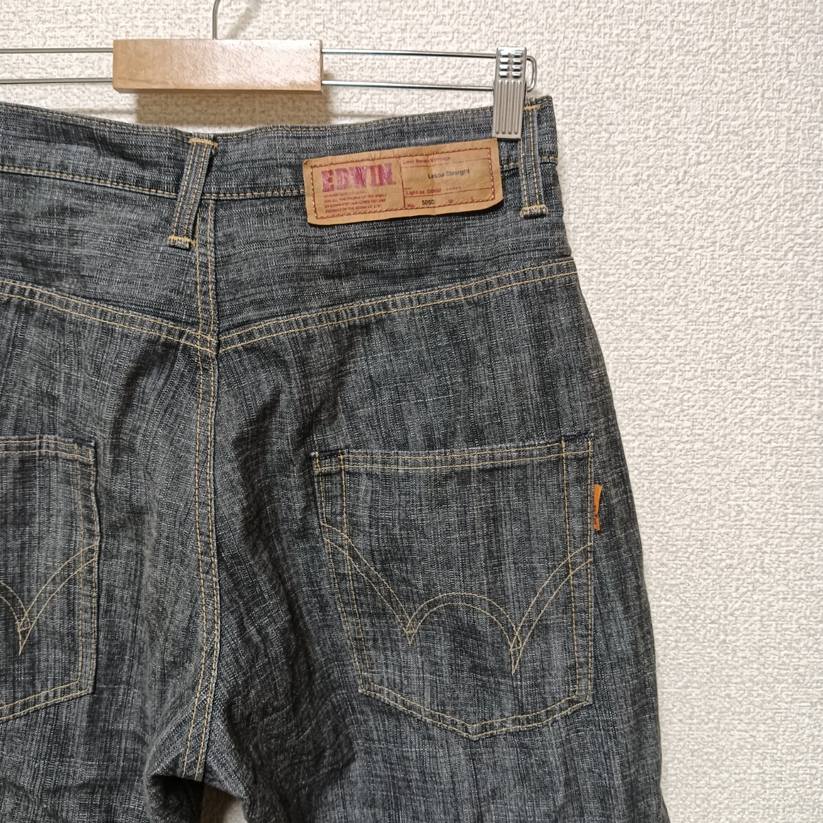- 美品★EDWIN 505D 15051 デニムパンツ ジーンズ ジーパン ルーズストレート セルビッチ ブラック 黒系 W33 オールド エドウィン 古着 USED
