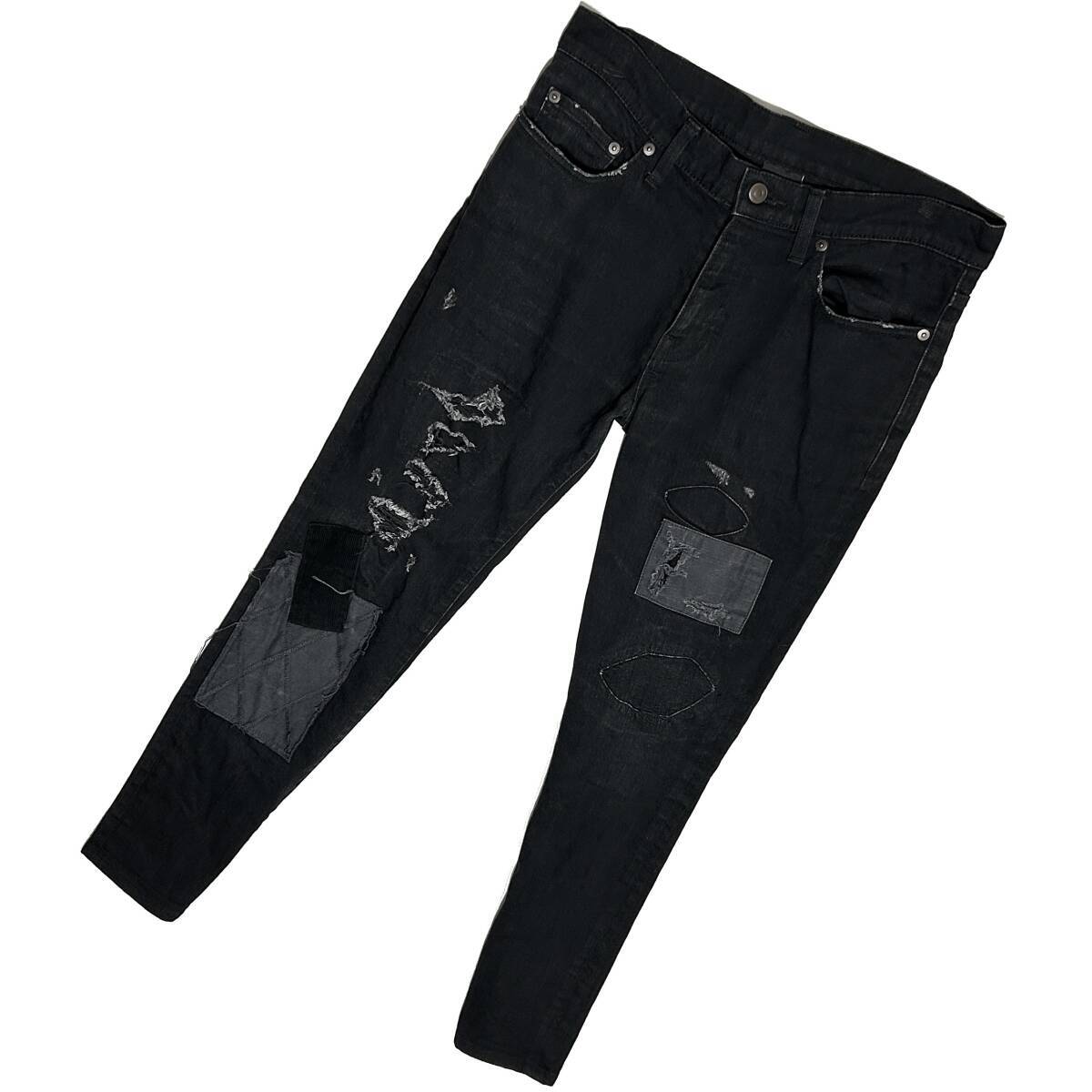 > 定価5.4万 AKM MILITARY TEX PATCHWORK 5POCKET 13oz STRETCH DENIM PANTS サイズM スキニーデニムパンツ wjk 1piu ジュンハシモト