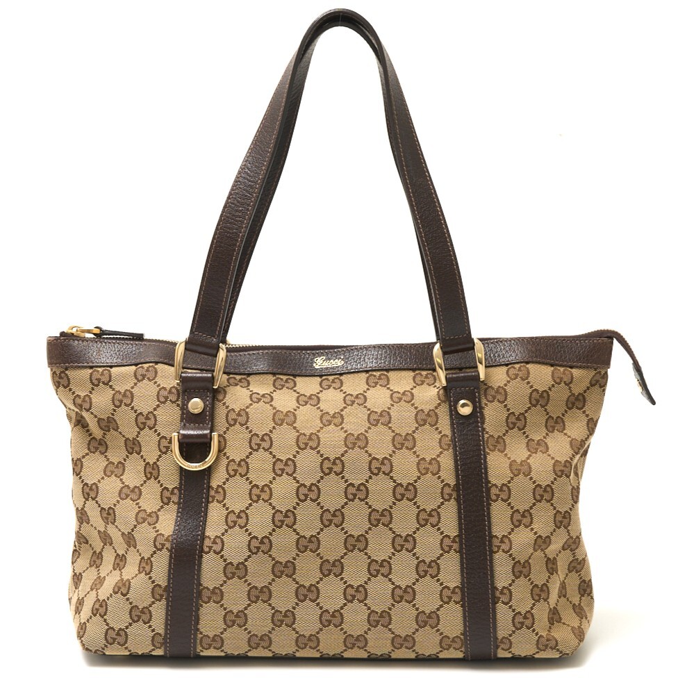 > GUCCI グッチ GGキャンバス トートバッグ 141470 ショルダーBAG レザー ベージュ×ブラウン×ゴールド シンプル カジュアル レディース