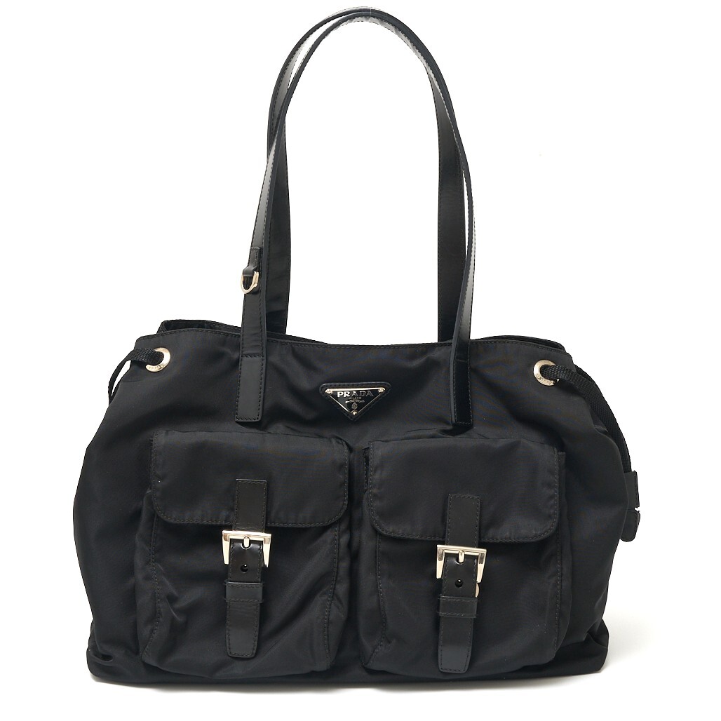 - PRADA プラダ ナイロン トートバッグ BR3257 ショルダーバッグ ナイロン×レザー ブラック×シルバー トライアングルロゴ レディース