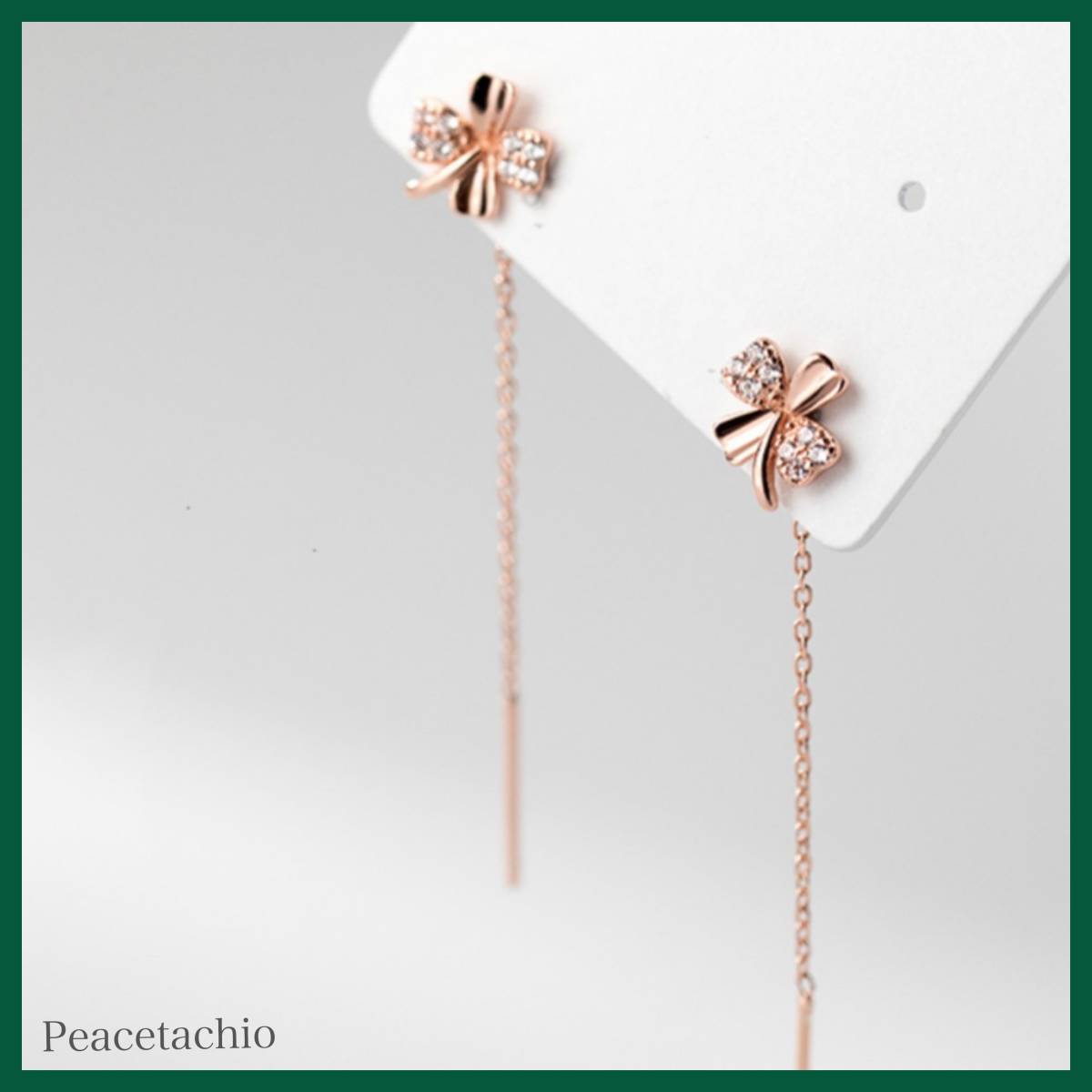 > ピアス Silver925 シルバー ピンクゴールド チェーン クローバー CZダイヤ 揺れる アレルギー対応 プレゼント ギフト ケース付