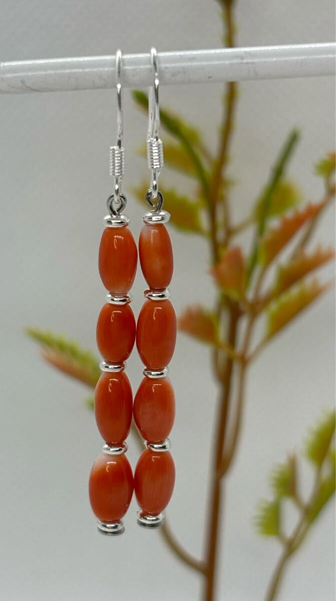 - 天然珊瑚 国産本サンゴ オレンジカラー s925 可愛いピアス(s519)