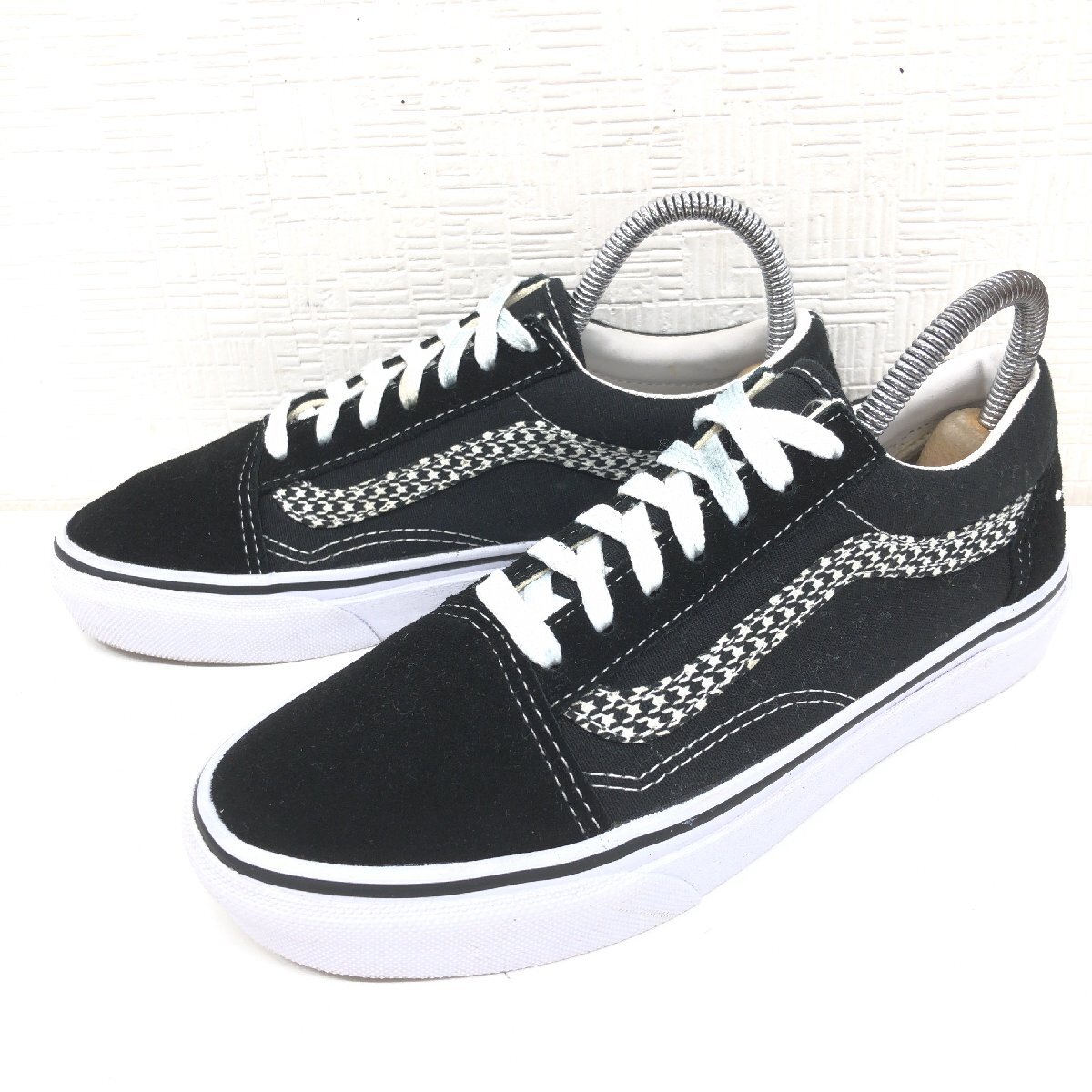 > ●VANS ヴァンズ オールドスクール PUPPY.F 千鳥格子 花柄刺繍 ローカット スニーカー22.5cm 黒 ブラック ジャズ バンズ スケボー サーフ