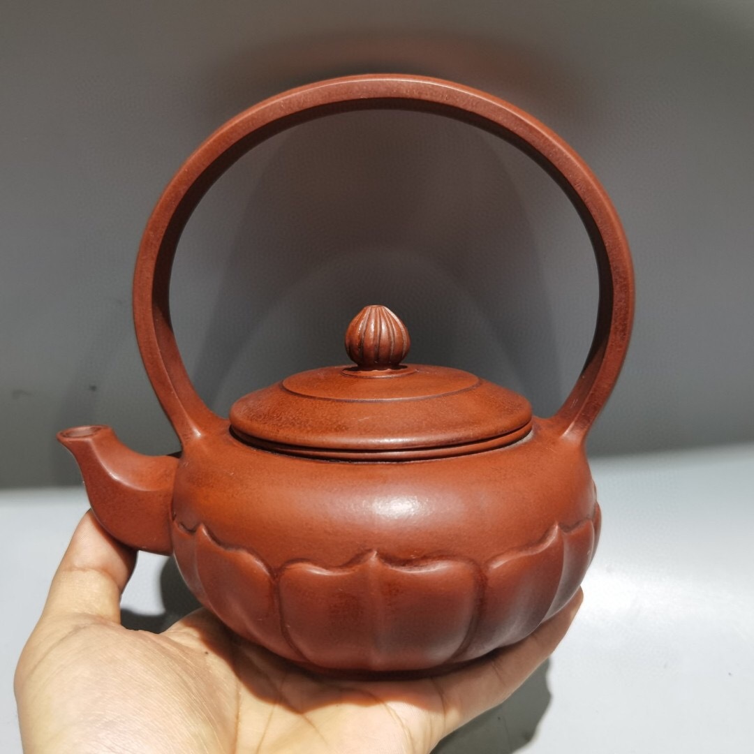 > ▽鴻▽ 茶具 紫砂壺 花瓣提梁壺 紅泥 施小馬款 茶壺 酒壺 急須 茶道具 茶道品