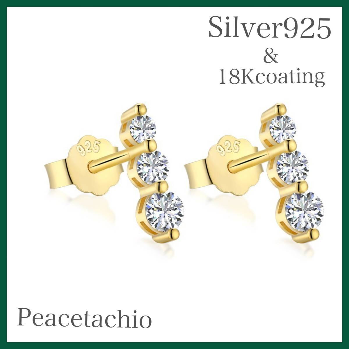 - ピアス シルバー Silver925 18Kコーティング アレルギー対応 3粒 3連 CZダイヤ プレゼント プチギフト 贈り物 専用収納ケース付