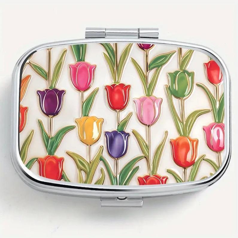 - ピルケース チューリップ プリント アクセサリーケース 薬入れ 小物入 0013