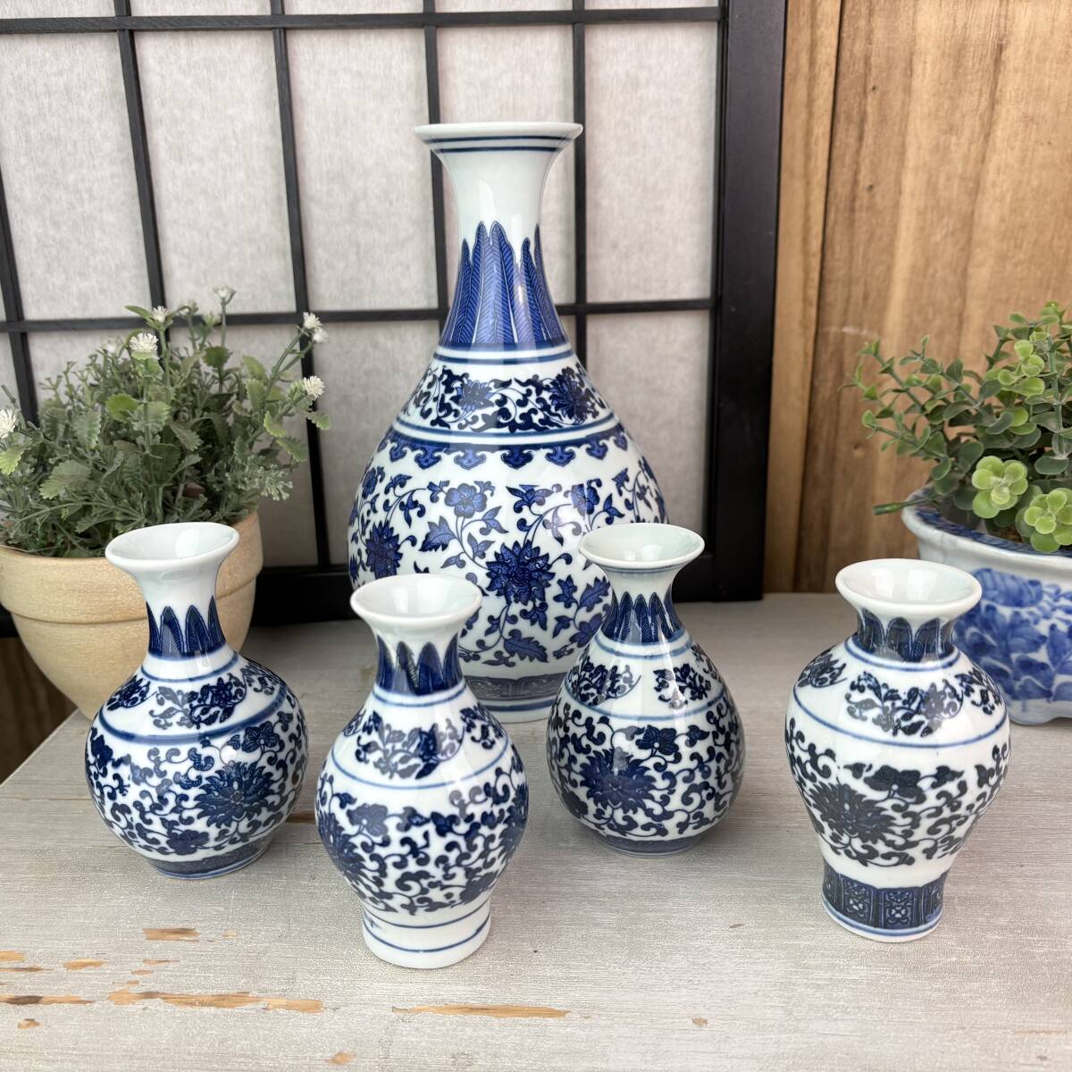 - 景徳鎮染付陶器藍色花瓶5点セットインテリア雑貨花器和風アジアン一輪挿し