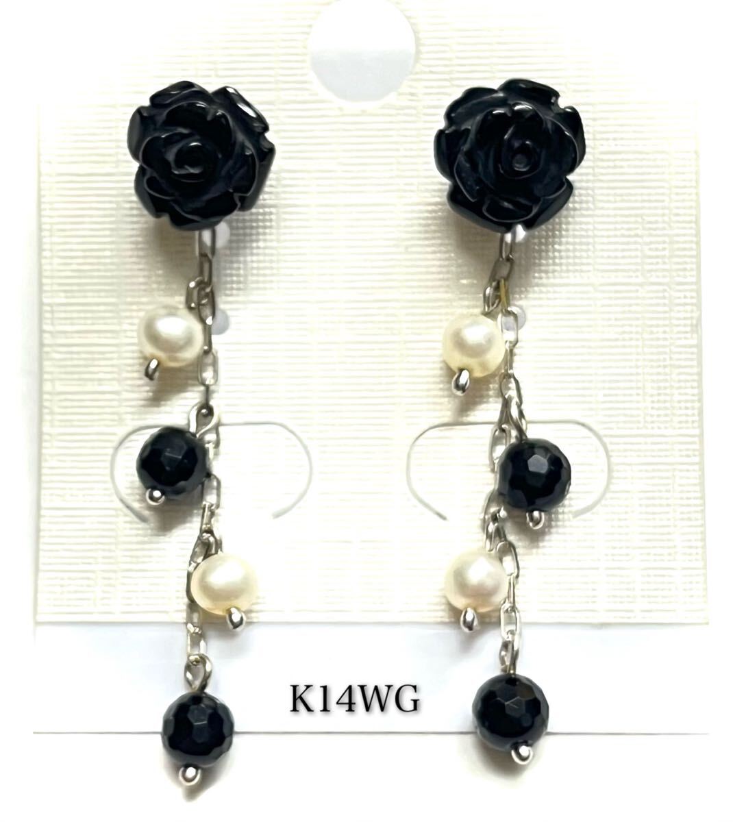 - K14WG★ホワイトゴールド★カメリア 薔薇型 ピアス