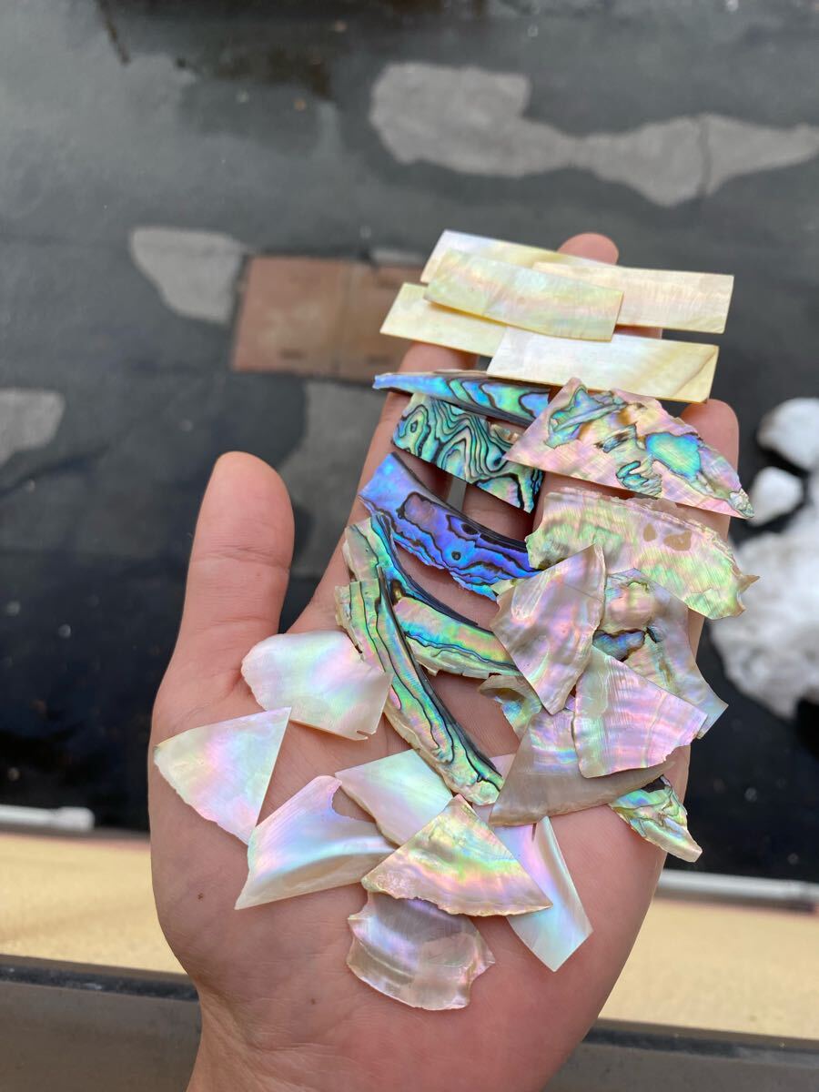 - 螺鈿細工、ハンドクラフト材料 まとめセット25枚 夜光貝、白蝶貝、アワビ貝、ニュージーランドアワビ貝