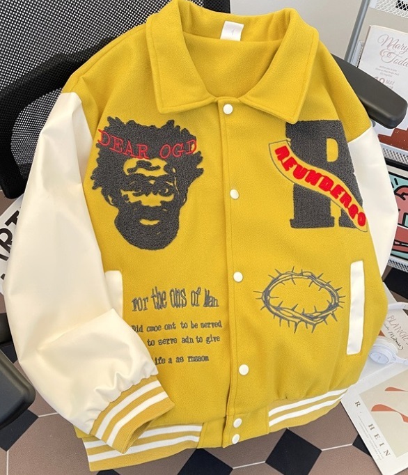 - 新入荷 春秋 スカジャン 刺繍 メンズ ブルゾン フライトジャケット 野球服 上質 男女アウター アメカジ 黄/L