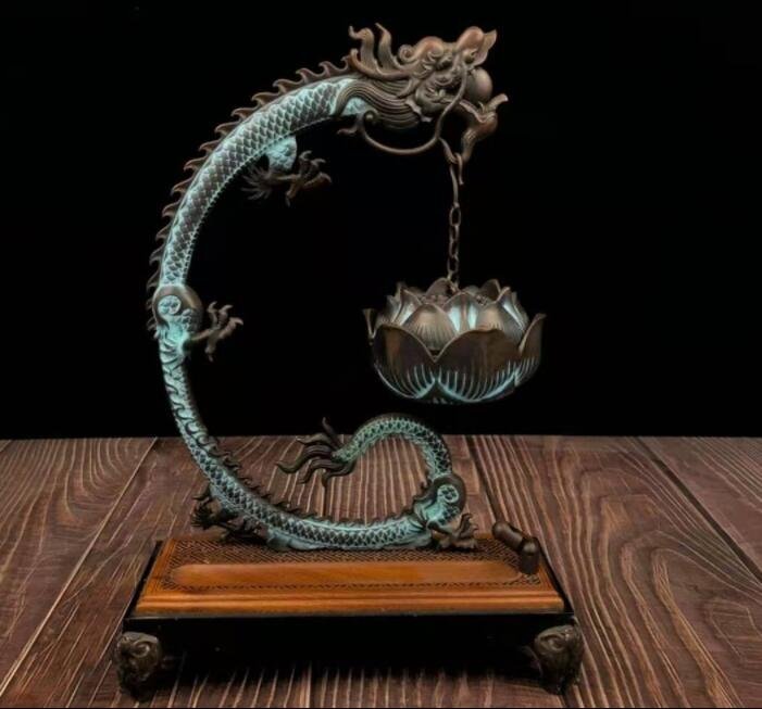 - 美品 香炉 竜 蓮の花 銅器 銅製品 鎮宅辟邪 開運風水 招財 置物 工芸品 生活 ギフト 装飾品