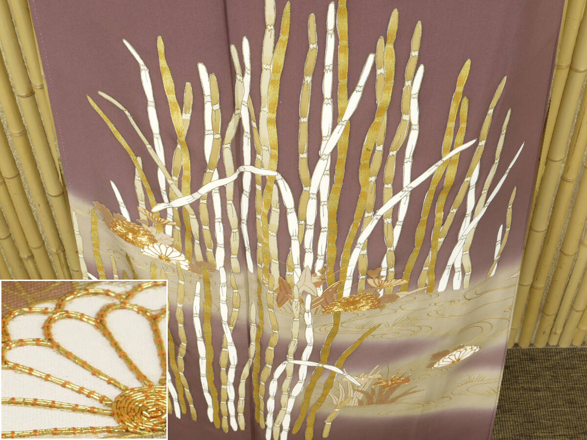 - 【京かんざし】657★紋付色留袖 本加工染 金駒刺繍 躾糸付未着用 身丈160.5 cm裄丈65 cm袖丈47 cm★即決送料無料!