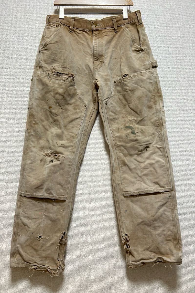 - 00s USA製 carhartt HELMETS HARDHATS ダブルニー ダックペインターパンツ カーハート フェード 34×32Loose Original Fit BORO PANTS ボロ
