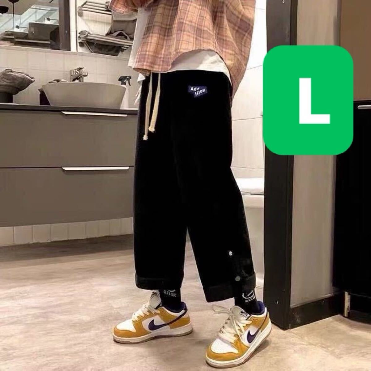 > ワイドパンツ ボトムス コーデュロイ ストレートパンツ トレンド ストリート ユニセックス メンズ レディース 渋谷 ブラック 黒 L