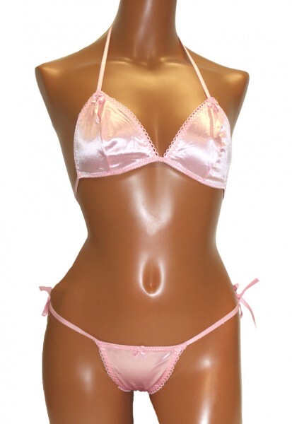 - NA サテン 系 紐 ブラ&Tバック セット マイクロビキニ ブラジャー Tバック 三角ブラ ピンク