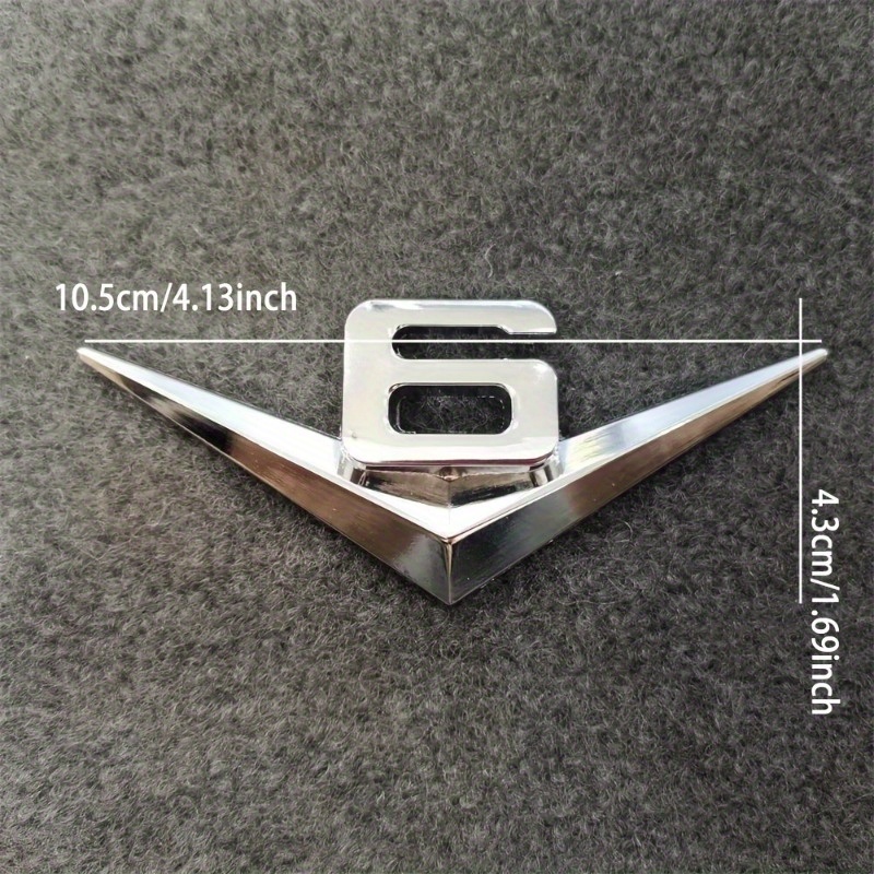 > エンブレム おしゃれ V6 金属 シルバー メタルステッカー 立体 10.5cm 車外アクセサリー 車用 ロゴ 簡単貼り付け バイク 外装 シール t5497