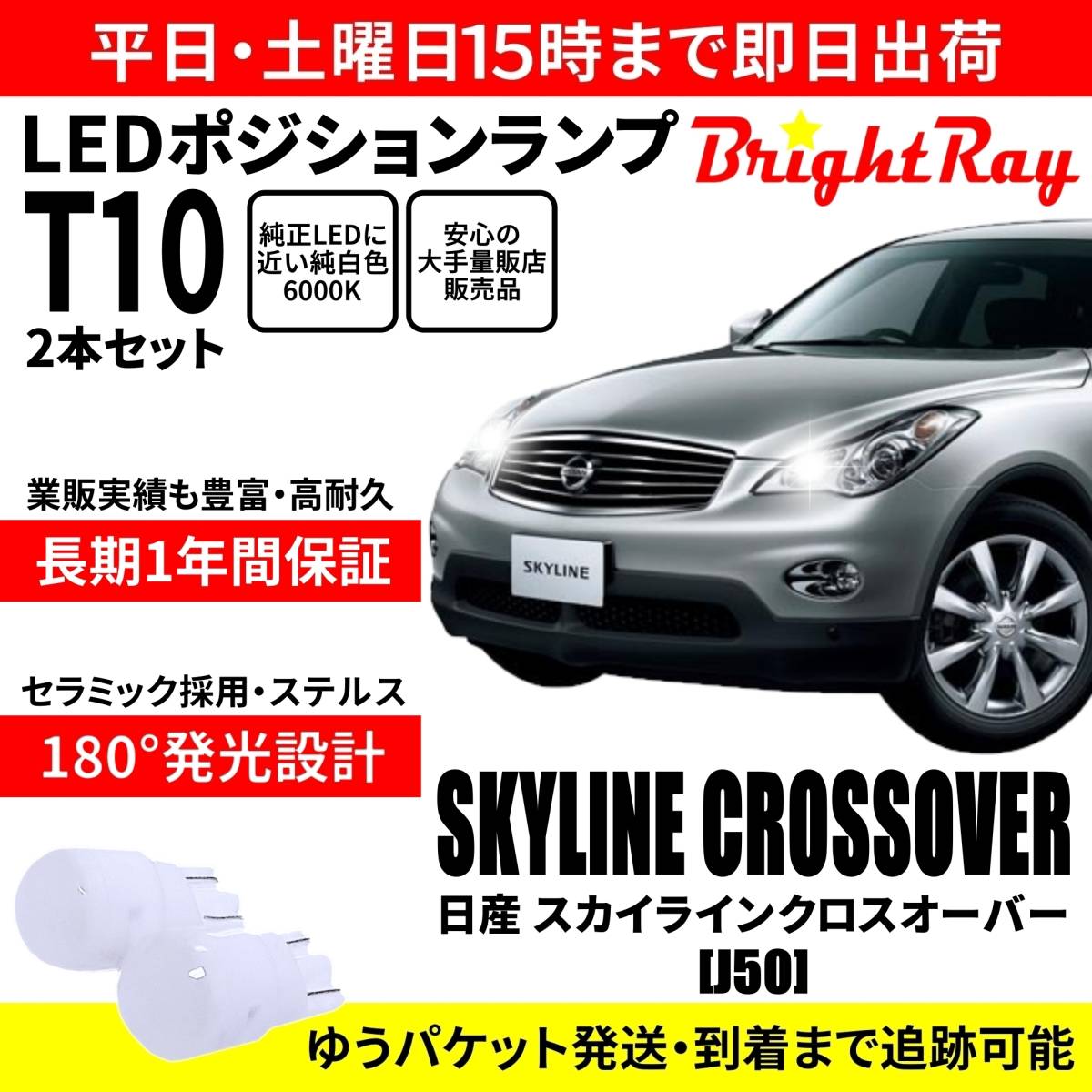> 送料無料 1年保証 日産 スカイラインクロスオーバー J50 BrightRay T10 LED バルブ ポジションランプ 車幅灯 2本セット 車検対応