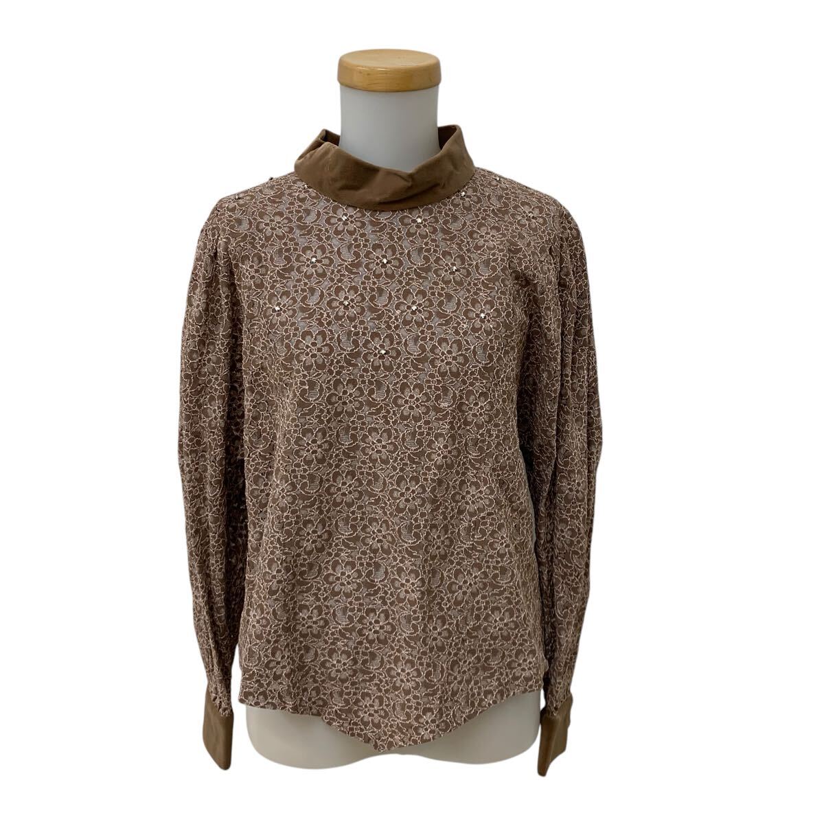 > NB295-66 Leilian レリアン レース ブラウス トップス ハイネック 長袖 デザイン レディース ブラウン 茶 レディース 11